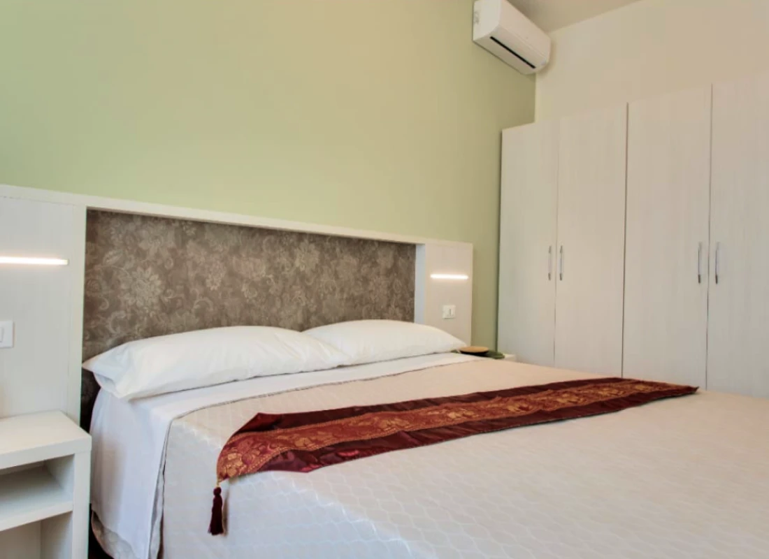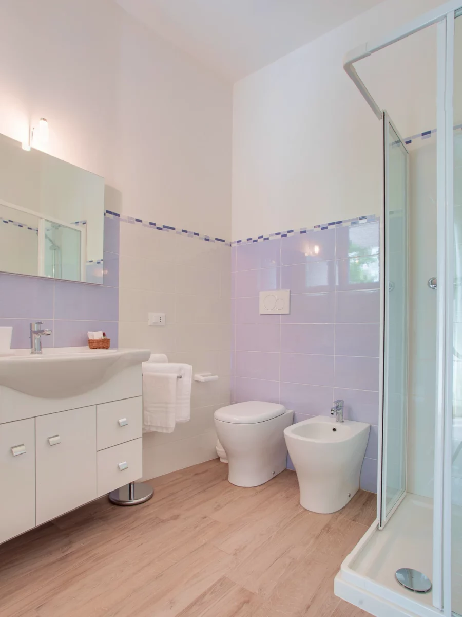 Questi bilocali da 40 mq, situati al primo o al secondo piano, offrono una camera matrimoniale con terrazzo, un bagno finestrato con doccia e una zona giorno con cucina attrezzata, completa di divano letto matrimoniale e secondo terrazzo. Ideali per chi desidera un soggiorno rilassante con tutta la comodità di un appartamento.